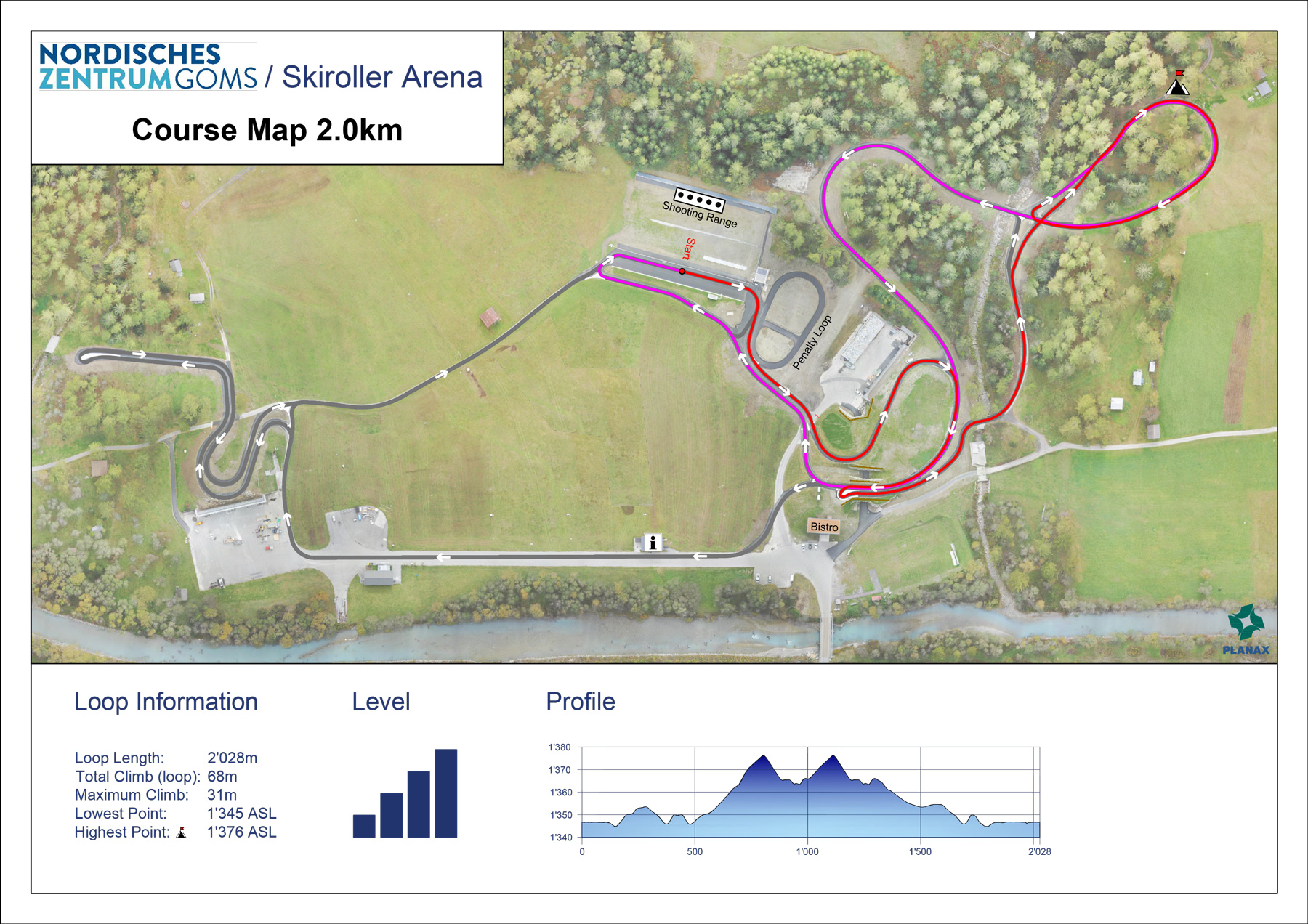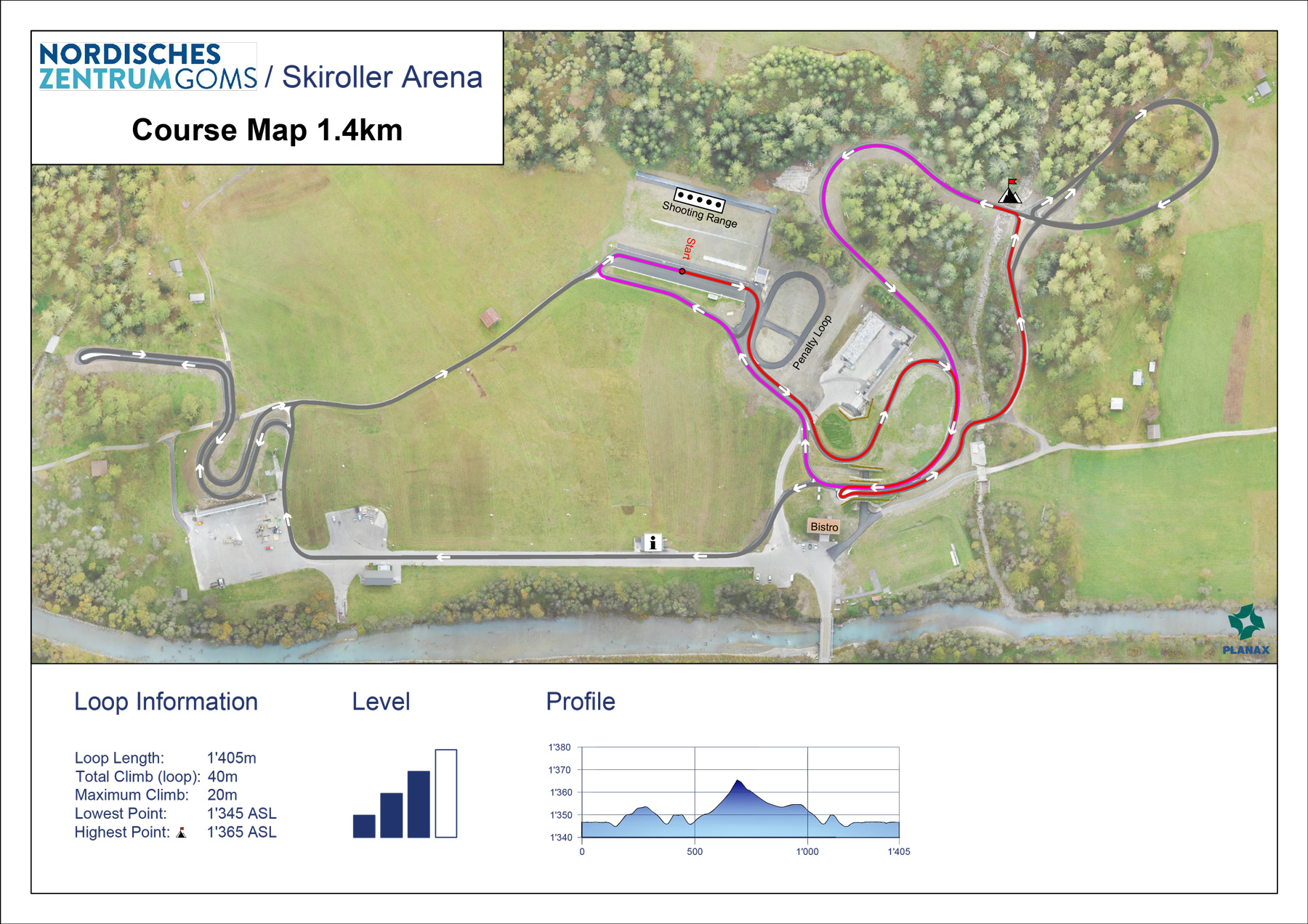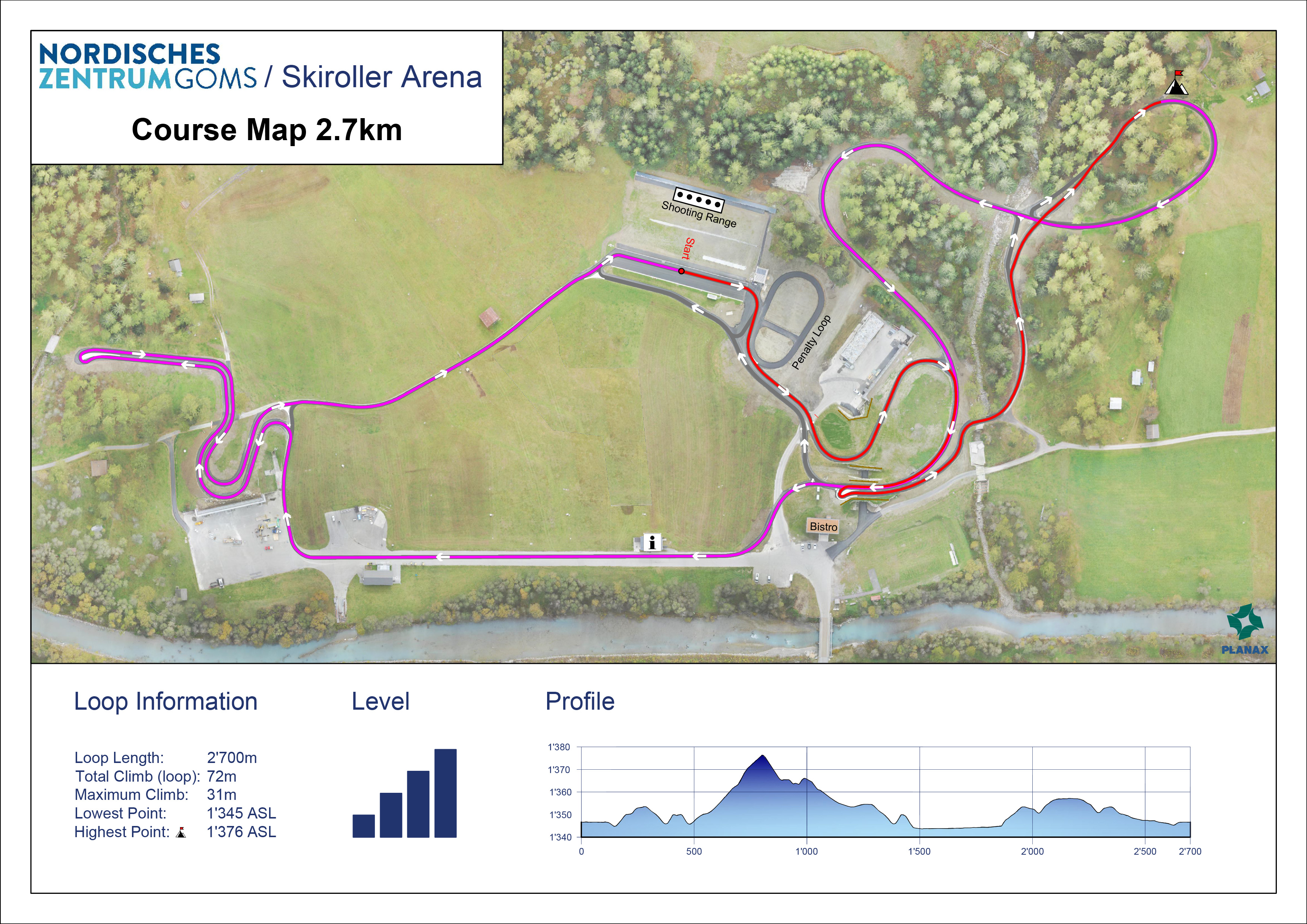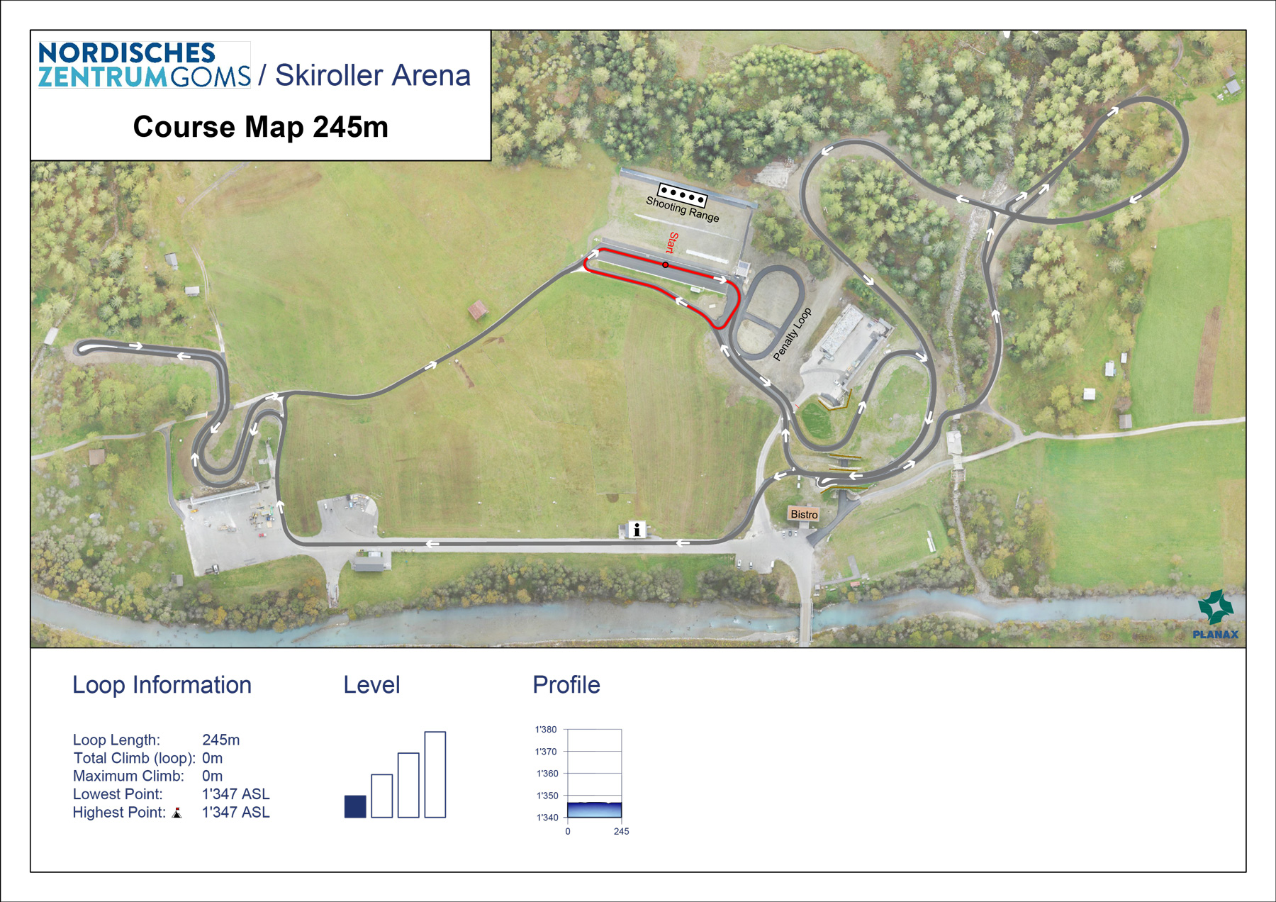 Die Gesamtlänge der Rollskibahn im Goms beträgt 3 km. Insgesamt stehen 12 verschiedene Routen Anfängern bis Profis zur Verfügung.