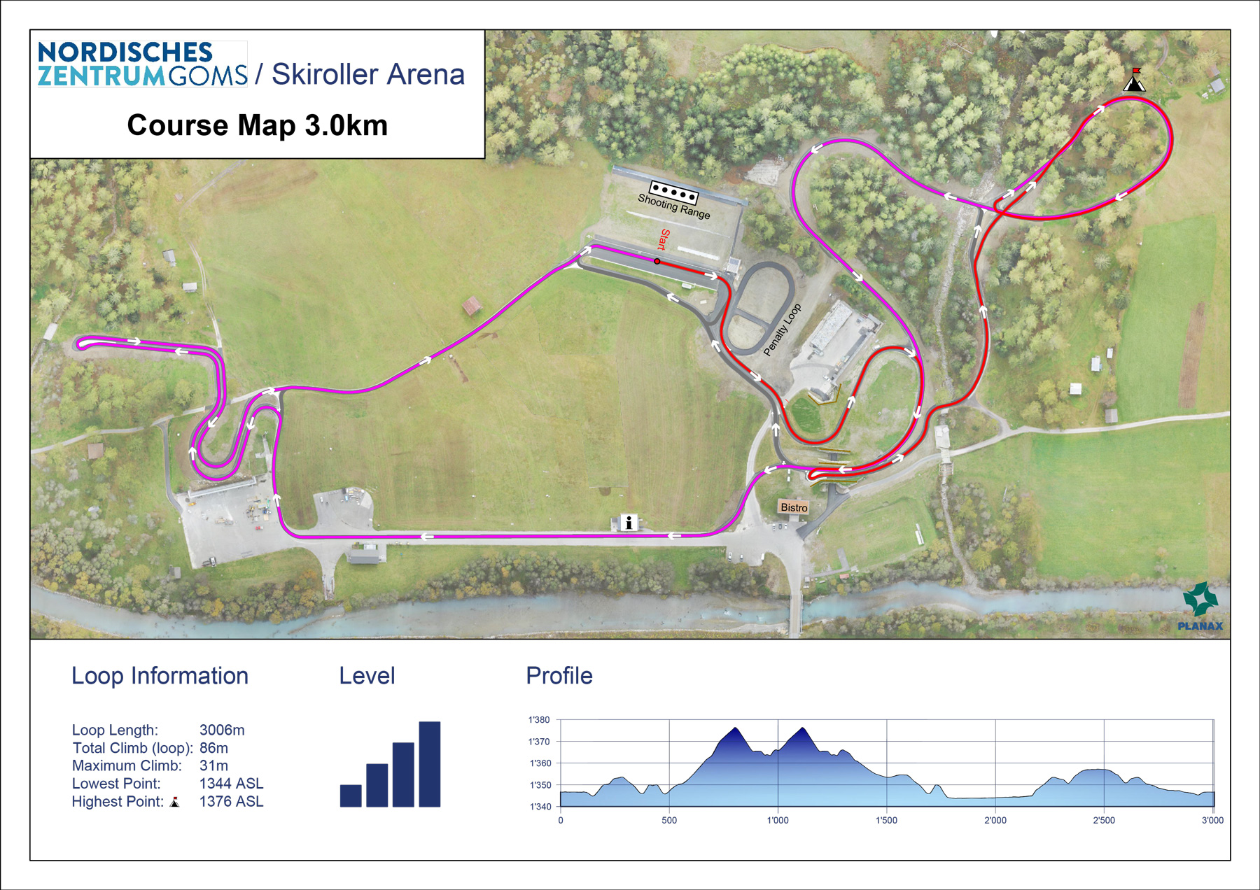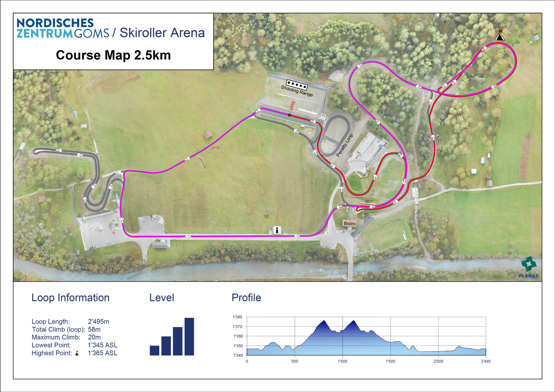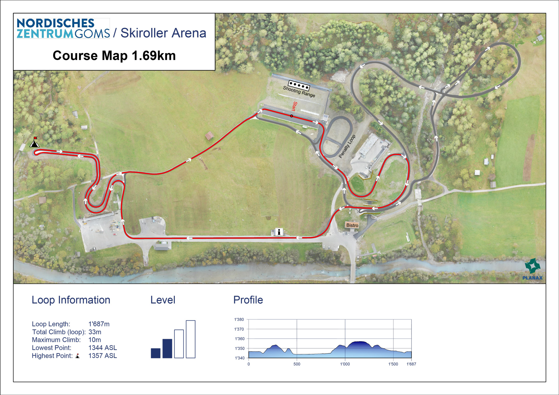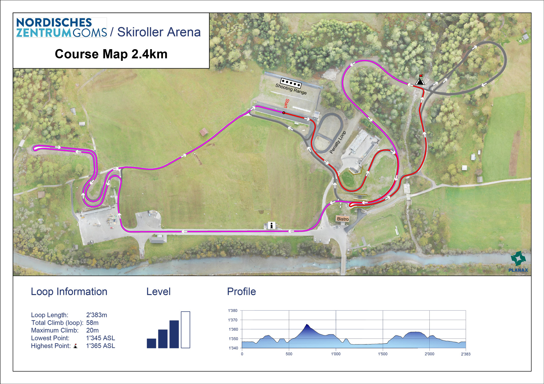 Die Gesamtlänge der Rollskibahn im Goms beträgt 3 km. Insgesamt stehen 12 verschiedene Routen Anfängern bis Profis zur Verfügung.